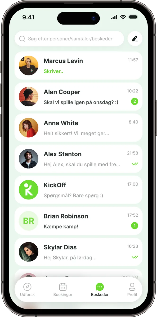 Fra 4v4 kampe på indendørs kunstgræs til stor 8v8 på kunst/græs - KickOff har en bred vifte af kampe som passer til dine præferencer.